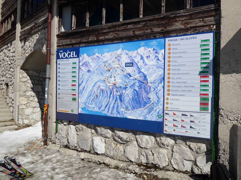 Het pisteplan geeft het skigebied Vogel zeer goed weer. Alle liften en pistes zijn ingetekend. Meer informatie over het skigebied is te vinden op de achterkant.