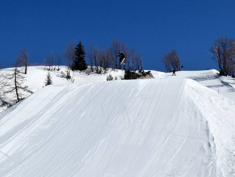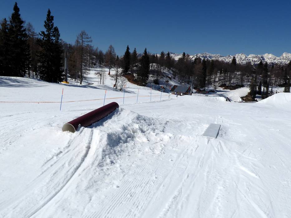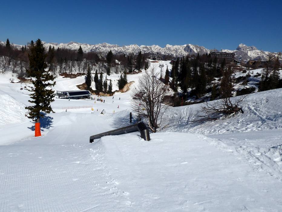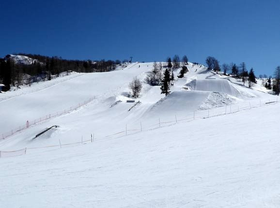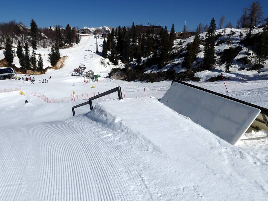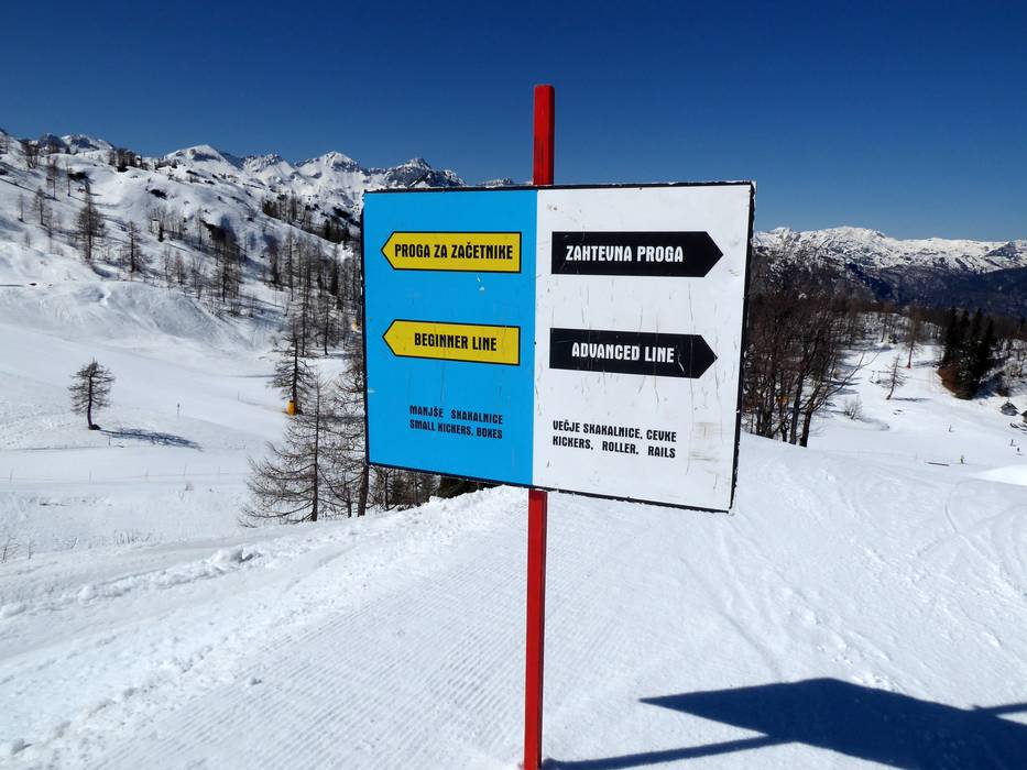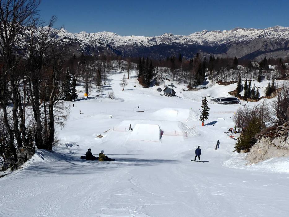 Het skigebied Vogel biedt een mooi snowpark en een kleine ski cross track/boardercross.