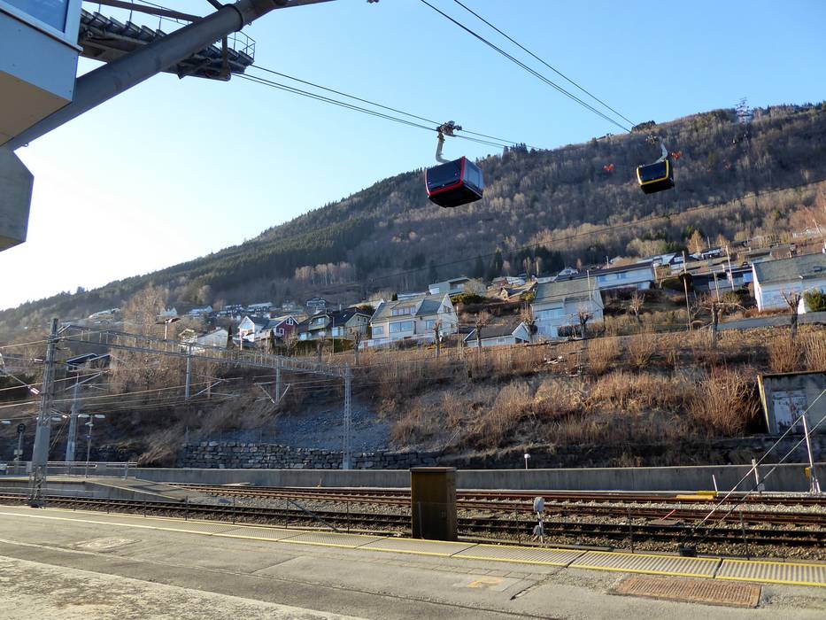 Het station Voss aan de beroemde Bergensbanen van Oslo naar Bergen ligt direct bij het dalstation van de Voss Gondol. - skibussen