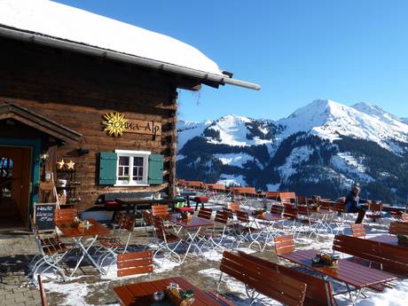 In het hele skigebied zijn er gezellige horecagelegenheden. Op de Walmendingerhorn zijn er leuke hutten met Walser specialiteiten. Het restaurant Gipfelstuba biedt daarnaast hoogwaardige Walser specialiteiten aan. Een bezoek aan de authentieke hutten is telkens weer een belevenis.