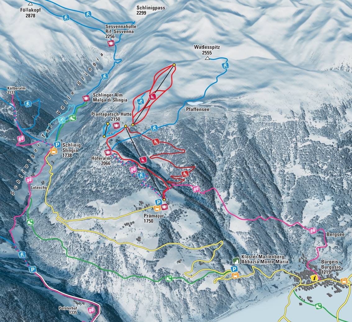 Pistekaart van het skigebied Watles – Mals (Malles Venosta)
