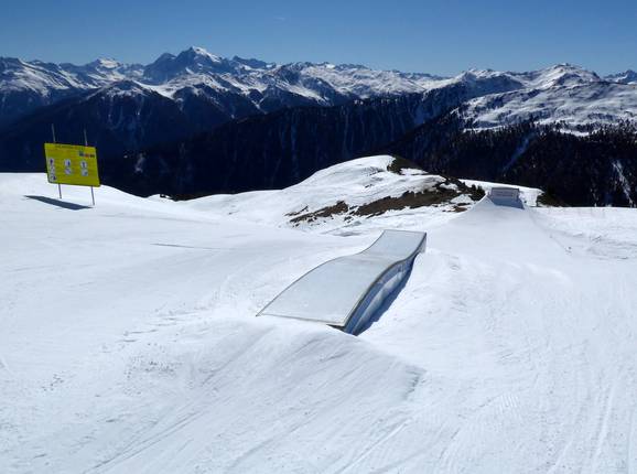 Het snowpark op de Erlebnisberg Watles biedt een geweldige setup voor beginners en gevorderden. Het funpark is gemakkelijk bereikbaar met de bovenste vierpersoonsstoeltjeslift. Bovendien biedt het park een prachtig uitzicht op het Vinschgau.