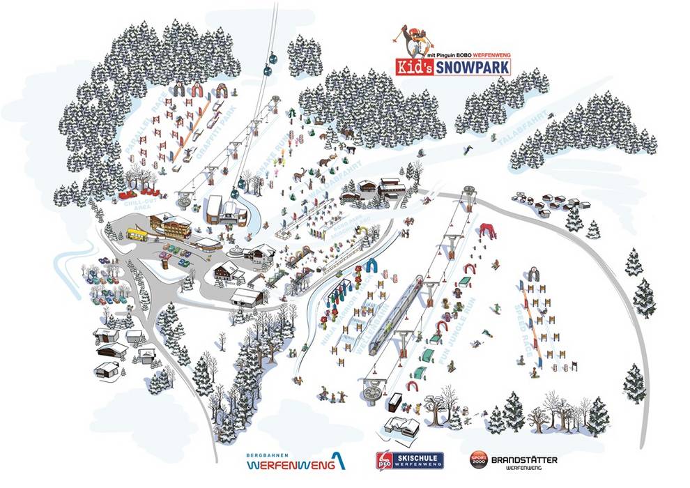NIEUW in Werfenweng Kid's Snowpark met Pinguïn BOBO bij de 8-EUB gondelbaan "Ikarus"Transportband - lift
