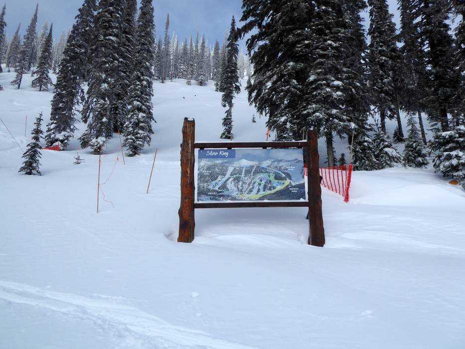 Het pisteplan van Whitewater toont verschillende zijden van het skigebied: het totaaloverzicht, Silver King, Summit en Glory Ridge. Alle afdalingen zijn in het plan aangegeven met nummers, namen en moeilijkheidsgraden. De liften zijn ook met details weergegeven.