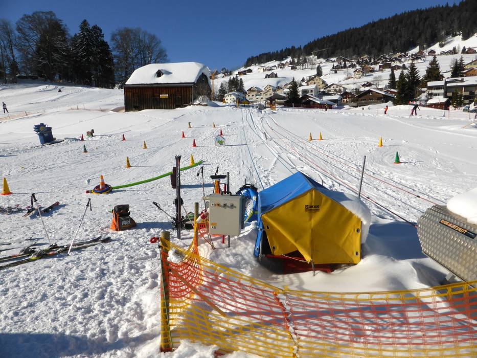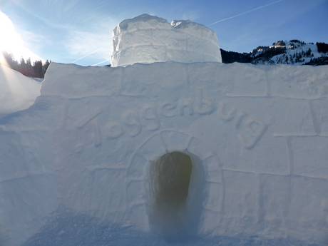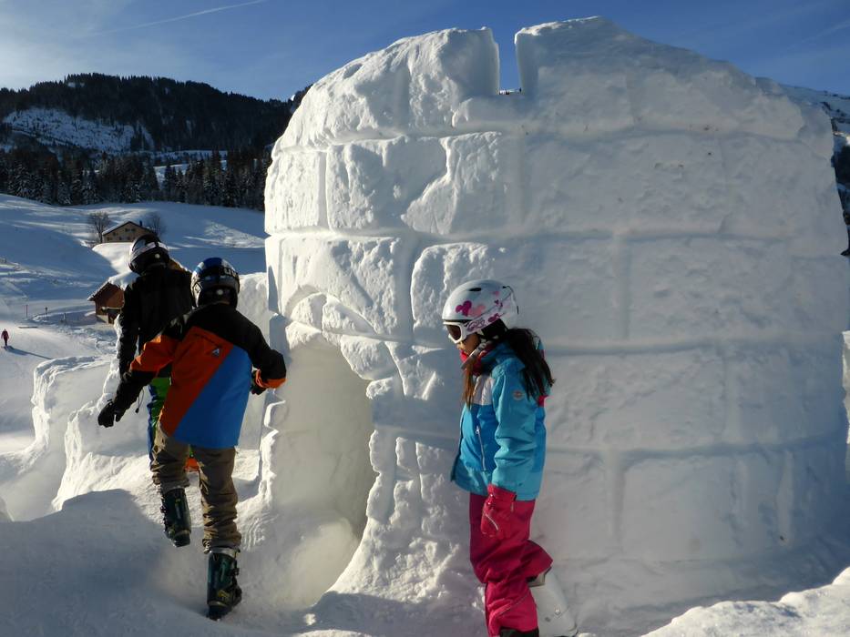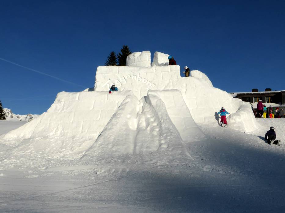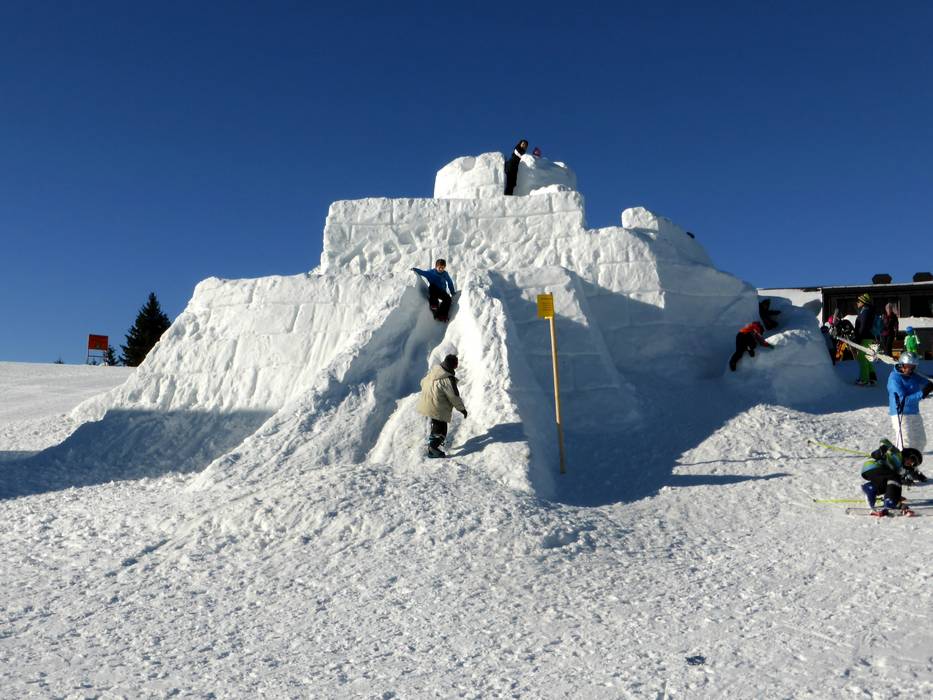 De reuzen van Toggenburg, gebouwd van sneeuw en ijs, liggen in Oberdorf (Wildhaus) en zijn een plezier voor de kinderen.