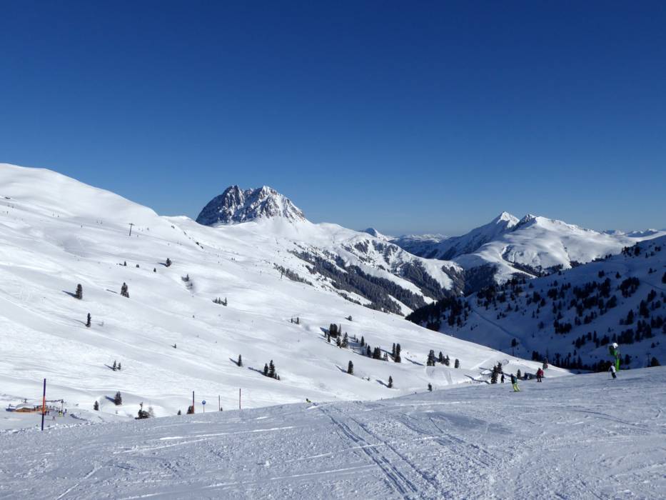 De Wildkogel-Arena met uitzicht op de Rettenstein