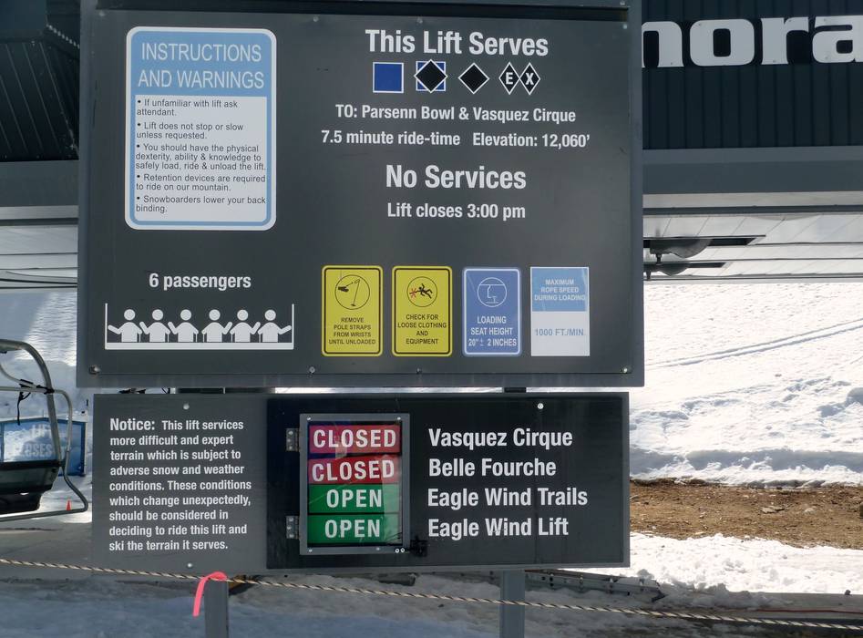 Oriëntatie (pistekaart, informatieborden, bewegwijzering piste) en veiligheid in het skigebied Winter Park Resort