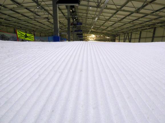De pistepreparatie gebeurt 's nachts met behulp van de Kässbohrer PistenBully 400. Zo zijn de pistes in de skihal altijd perfect.