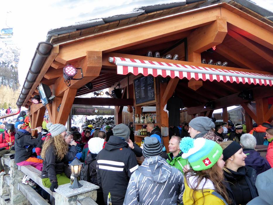 Hier begint het feest na een dag skiën. Direct aan de dalafdaling Blatten draaien hier elke dag dj’s. Goed humeur en de beste sfeer zijn gegarandeerd.