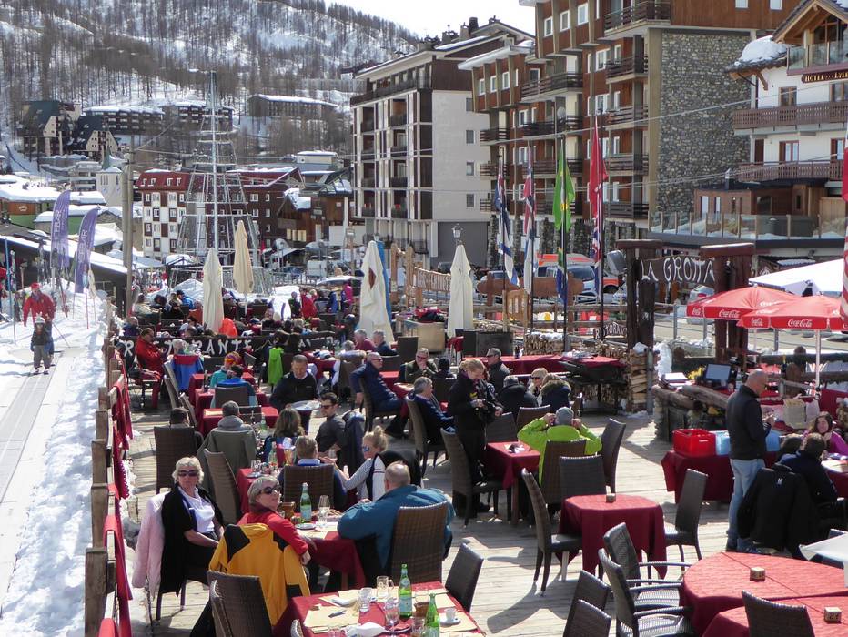 Voordat je afdaalt naar het dal van Breuil-Cervinia, wordt hier regelmatig flink gefeest. DJ’s zorgen voor de feestelijke sfeer.