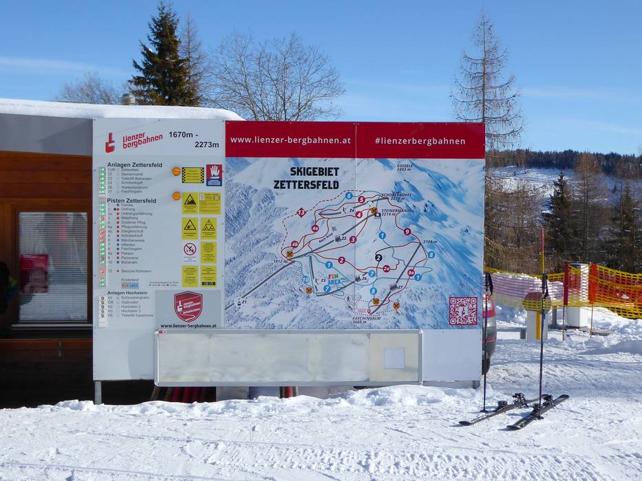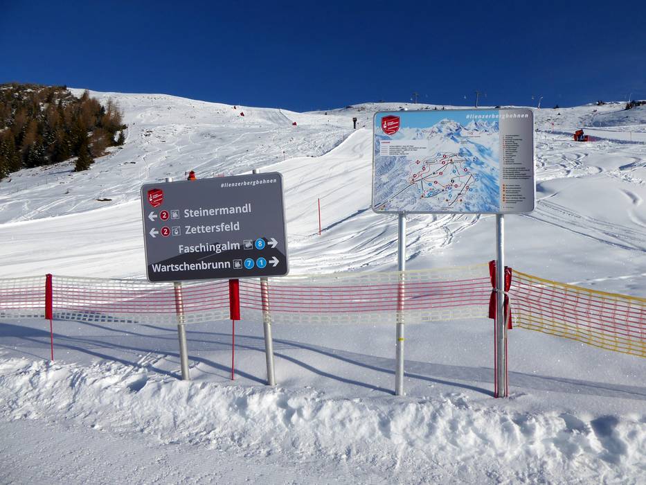 Oriëntatie (pistekaart, informatieborden, bewegwijzering piste) en veiligheid in het skigebied Zettersfeld – Lienz