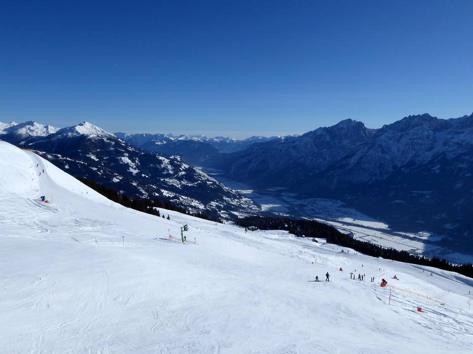 Prachtig uitzicht vanaf de middelzware piste op Lienz, de Hochstein en de Lienzer Dolomiten - Familieafdaling