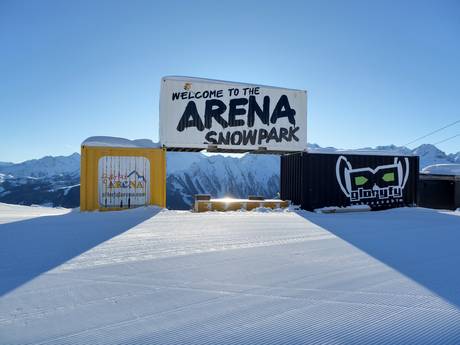 Bij de sleeplift Vorkogel op ongeveer 2020 m hoogte ligt de Arena Snowpark in Gerlos. De chillzone bij de parkcontainer met geluidsinstallatie maakt het aanbod compleet.