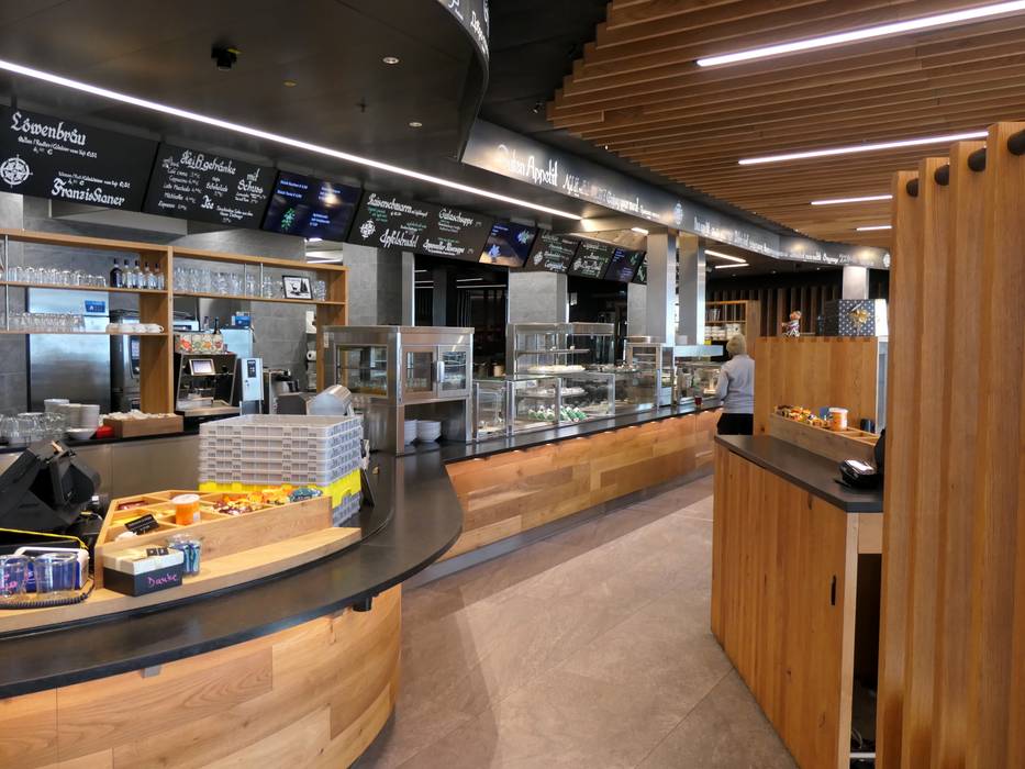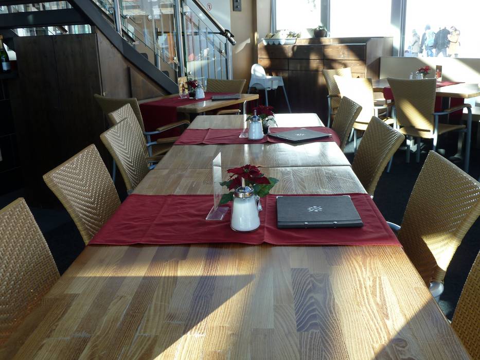 Het Panorama Gipfelrestaurant aan de Oostenrijkse kant van de Zugspitze biedt in een rustiek en gezellig ambiance hoogwaardige gerechten en dranken.