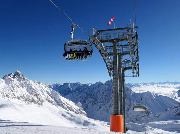 Het skigebied op de Zugspitze is ontsloten met twee moderne 6-persoons stoeltjesliften met weerbeschermkappen en meerdere sleepliften.