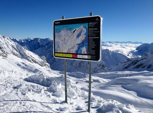 Oriëntatie (pistekaart, informatieborden, bewegwijzering piste) en veiligheid in het skigebied Zugspitze