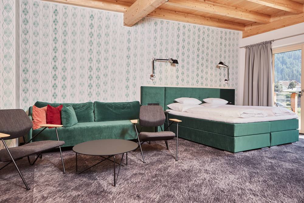 strakke lijnen, hoogwaardige materialen en natuurlijk zirbenhout maken elke kamer tot een hoogtepunt.