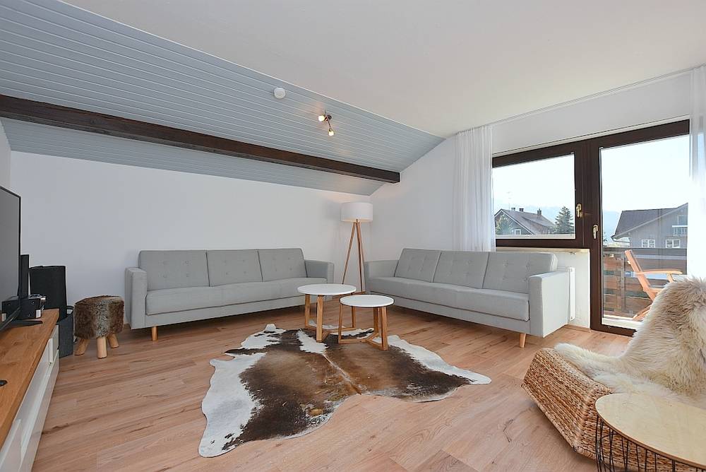 4-sterren vakantiewoning in Oberstaufen (wijk: Wiedemannsdorf), 70 m², 2 slaapkamers, 5 slaapplaatsen (2 familiebedden), 2e verdieping, met balkon met uitzicht op de bergen (richting Hündle), kindvriendelijk, in een goede en rustige ligging, tussen Immenstadt en het centrum van Oberstaufen, met wifi, smart-tv, carport, loipe/sneeuwschoenwandelen/alpineskiën/paragliden/rodelen/sleeën bij Hündle/Steibis/Hochgrat in 5-20 minuten met de auto,...